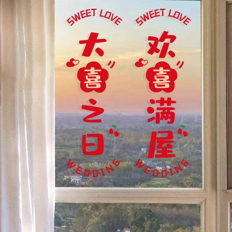 婚房布置欢喜玻璃贴纸推拉门新婚房装 饰厨房喜字贴结婚专用贴门