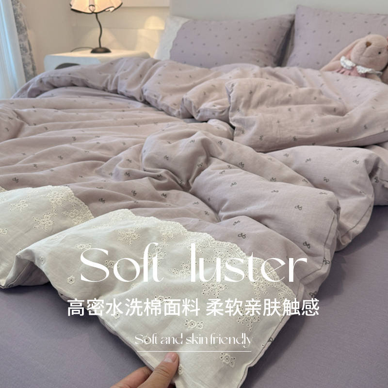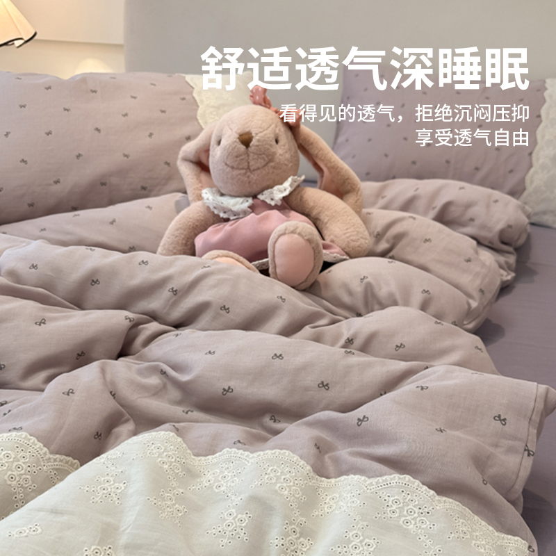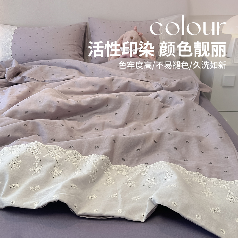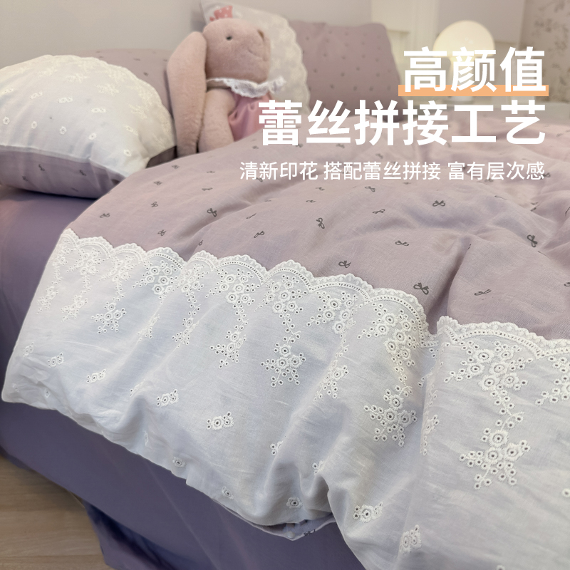 法式 蕾丝花边床上四件套水洗棉非全棉纯棉ins少女被套床单三件套4