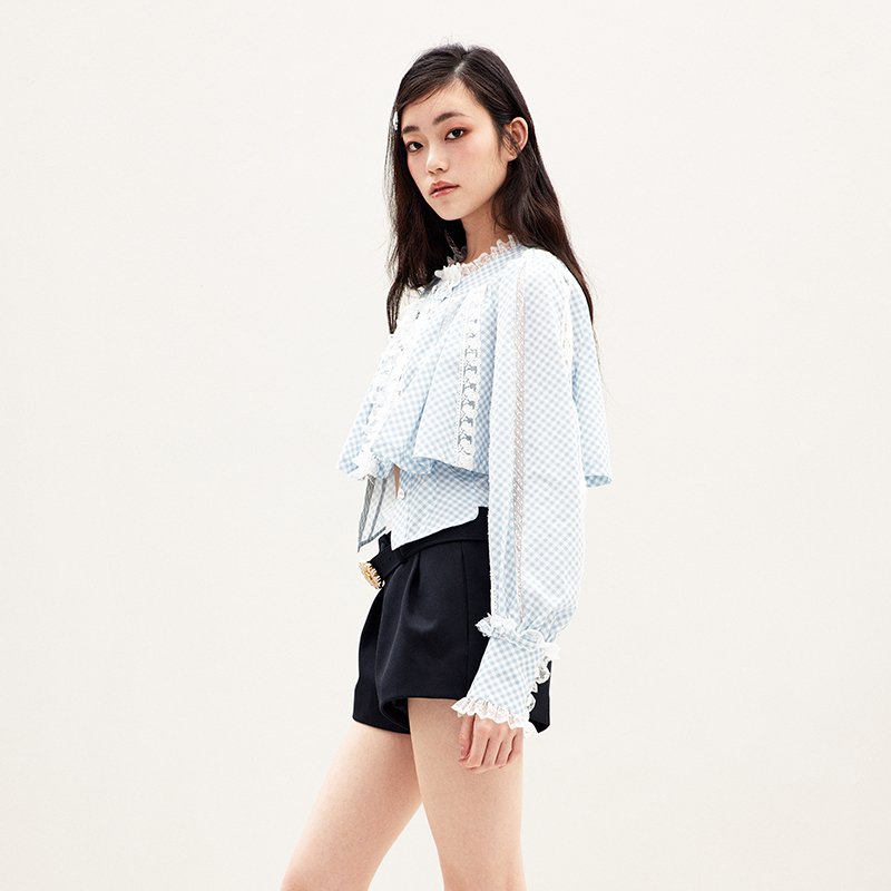 2025新款 森柔牛仔 女上衣宽松春季 森马牛仔衬衫 格纹衬衣 商场同款