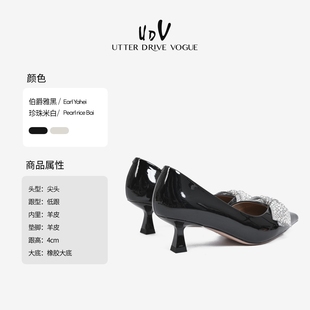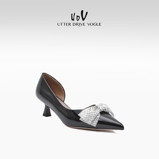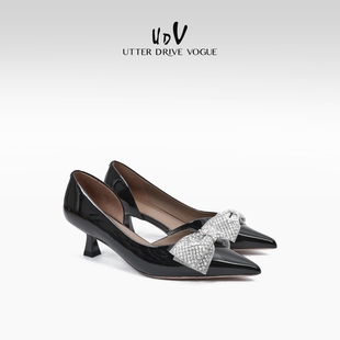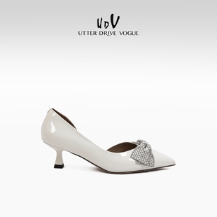 女 侧空红底裸色浅口气质单鞋 2025新款 细跟尖头漆皮名媛高跟鞋