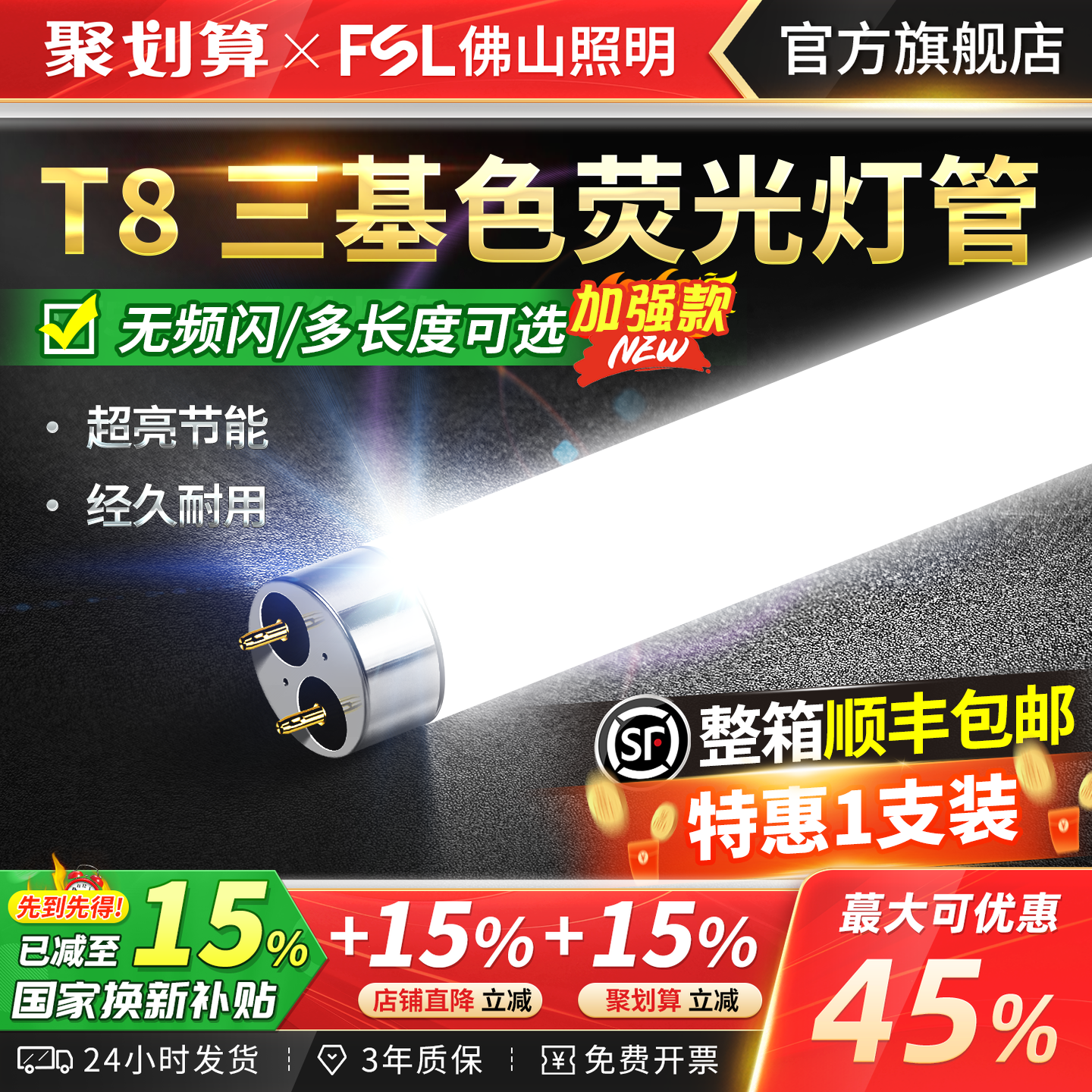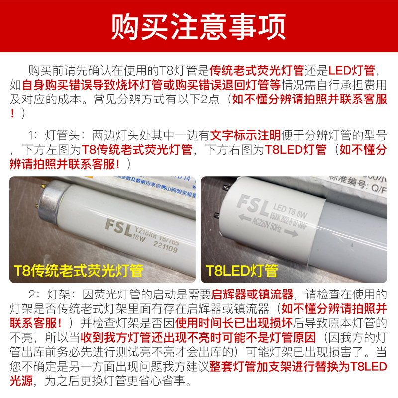 FSL佛山照明T8老式 荧光灯管18w30w36w格栅灯长条灯家用超亮日光灯