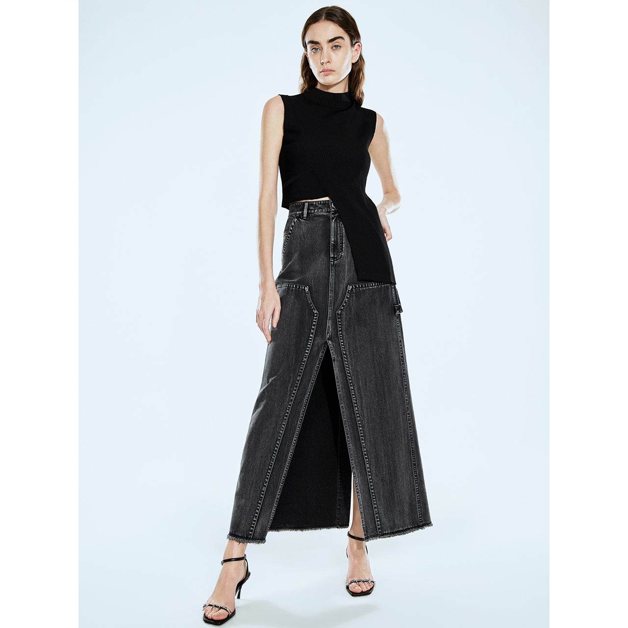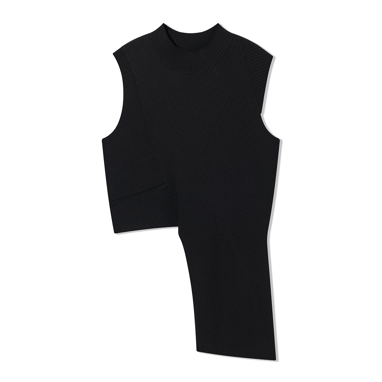 COVERINS2024夏季 细腻肌理不对称设计黑色针织背心女 新款