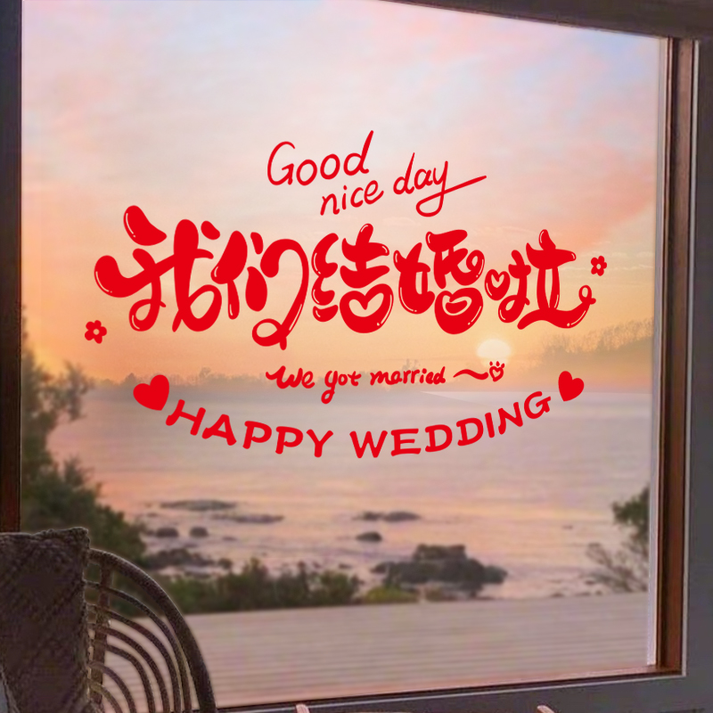 创意结婚喜字静电贴纸婚房布置女方陪嫁玻璃窗户喜帖婚礼用品窗花