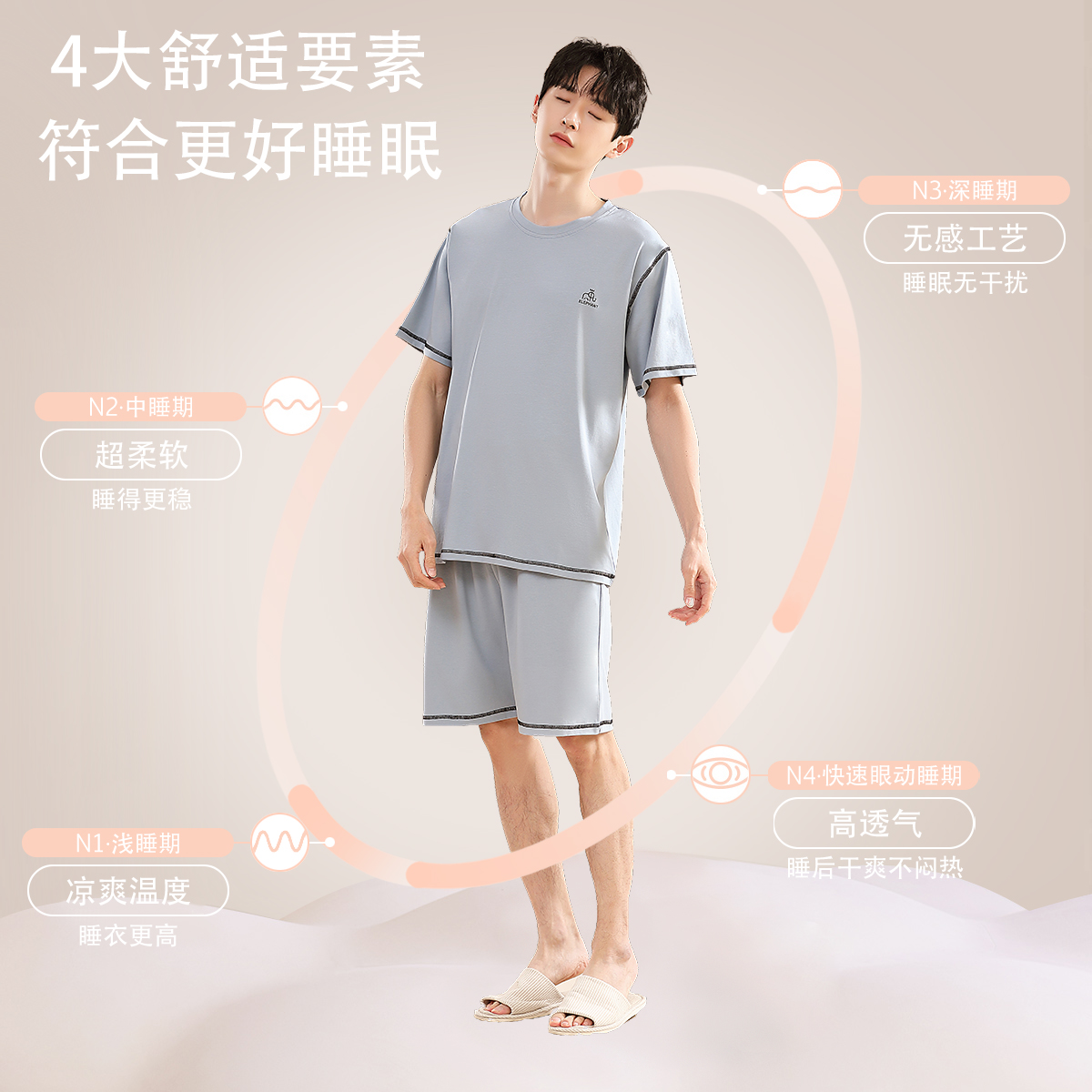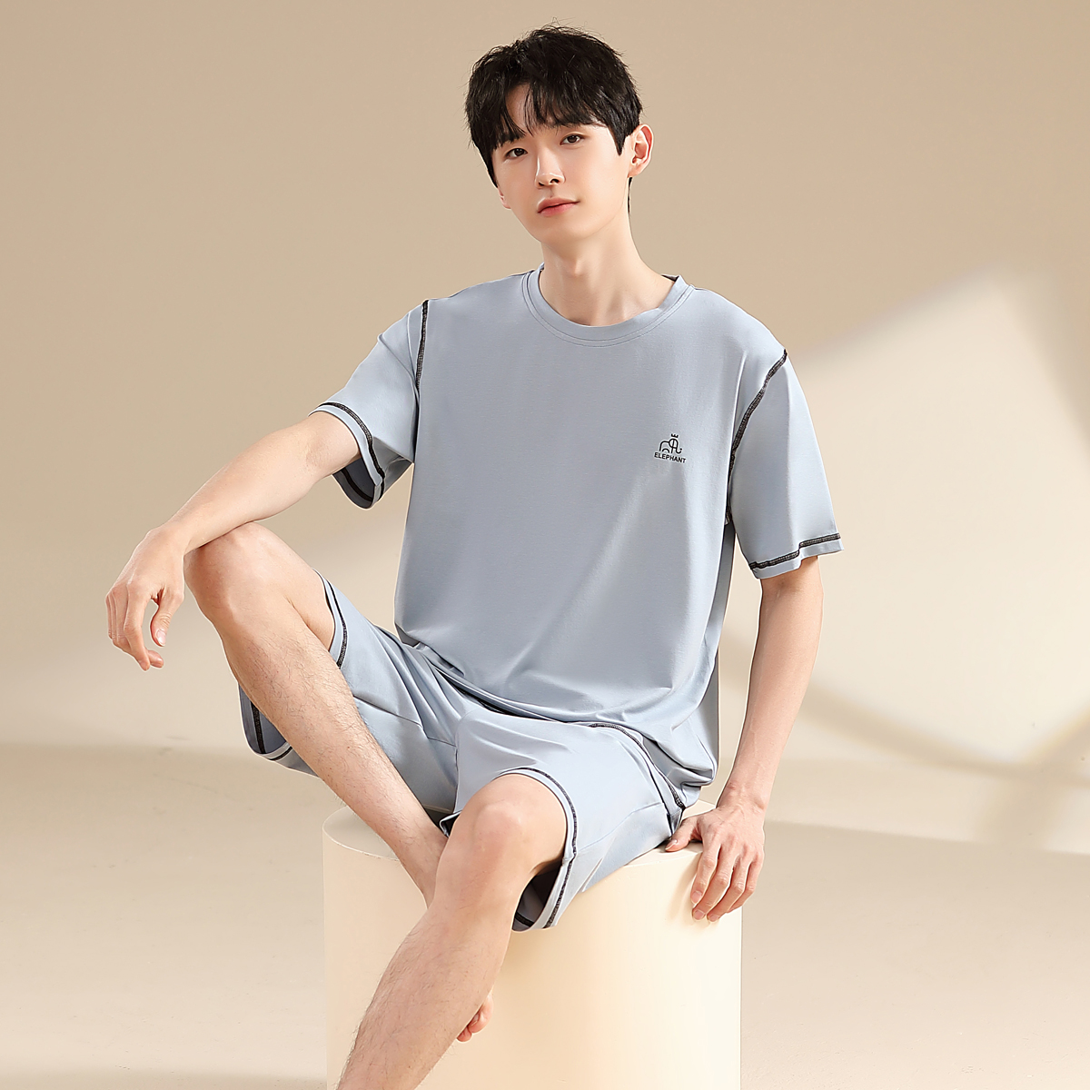 柔软型 家居服可外穿套装 莫代尔睡衣男款 棉质短袖 夏薄款 乐姿梦
