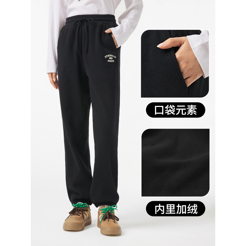 系带松紧宽松百搭休闲裤 鸭鸭羊毛蚕丝保暖卫裤 男士 新款 2025秋季