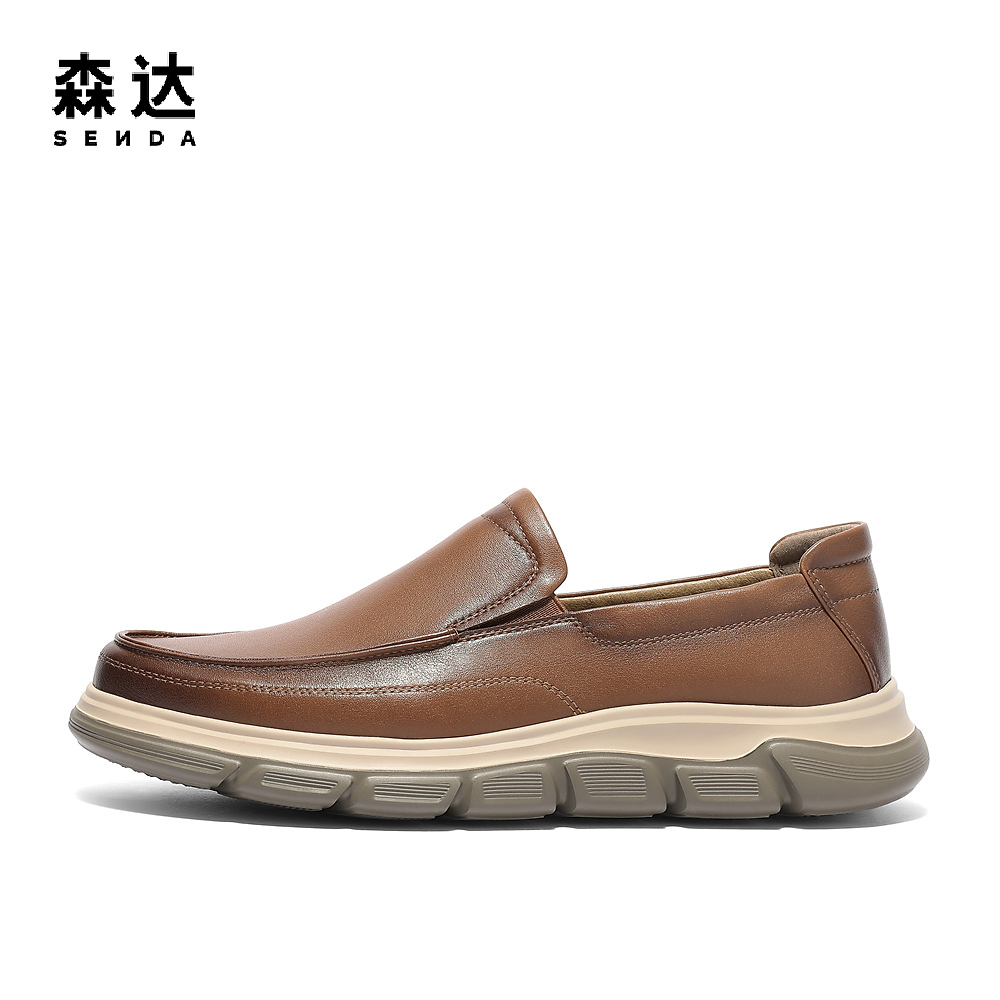 秋季 真皮透气软底舒适爸爸鞋 皮鞋 中年商务休闲皮鞋 男士 老人头男鞋