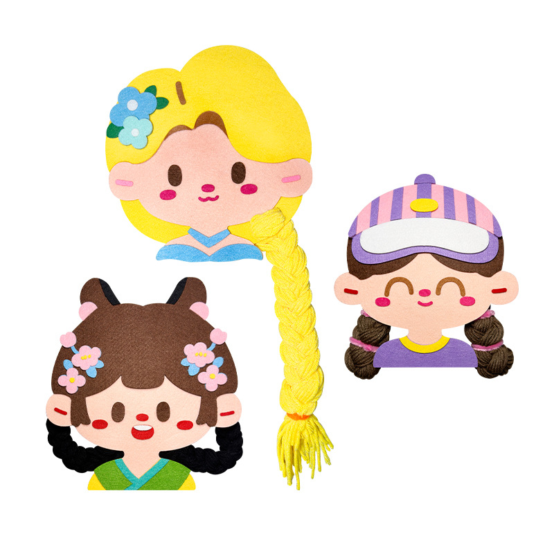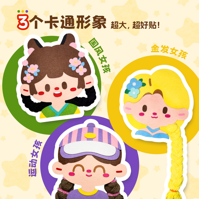 儿童手工DIY女孩编辫子玩具包包动手动脑幼儿园3 6岁五官贴纸套装