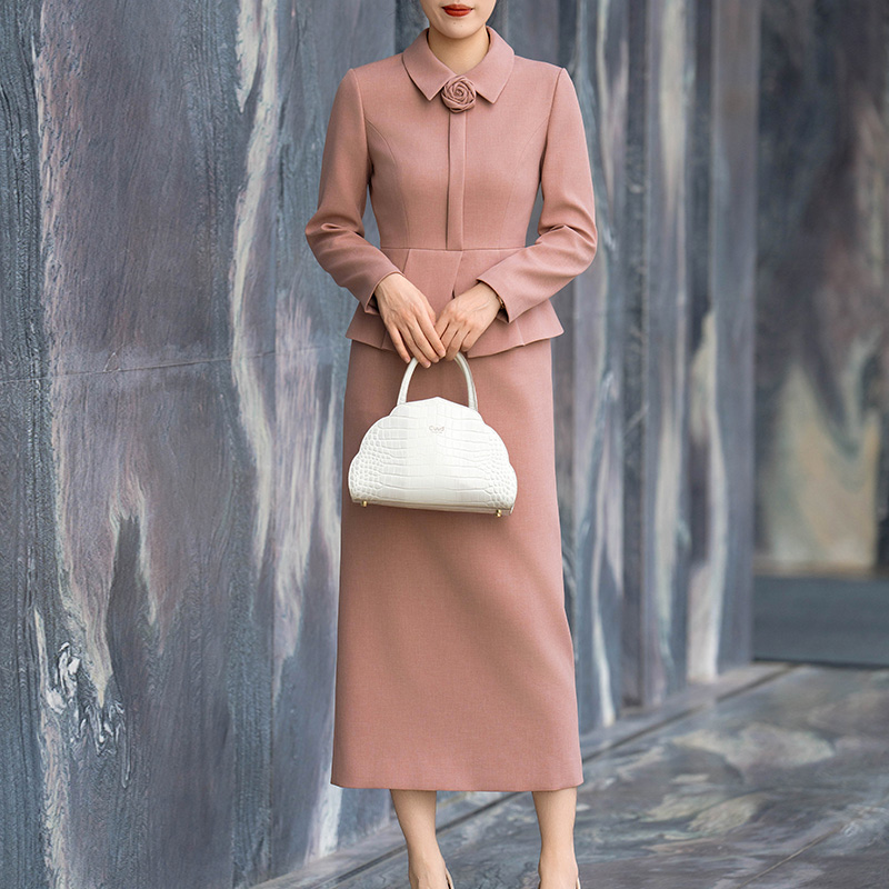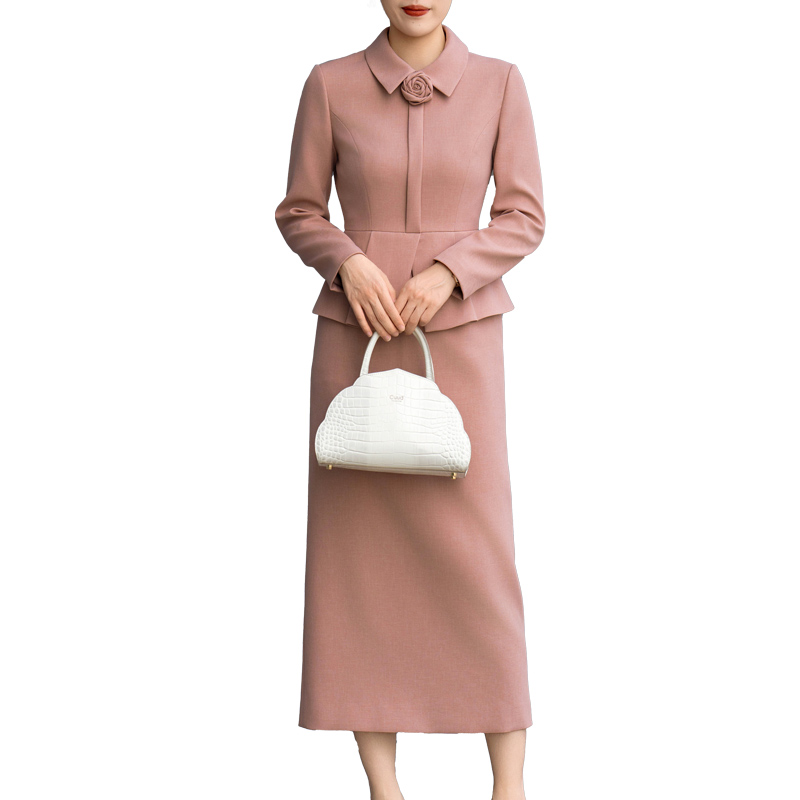 菲梦伊原创紫色含羊毛真丝毛呢连衣裙女秋装 复古高端收腰名媛裙子