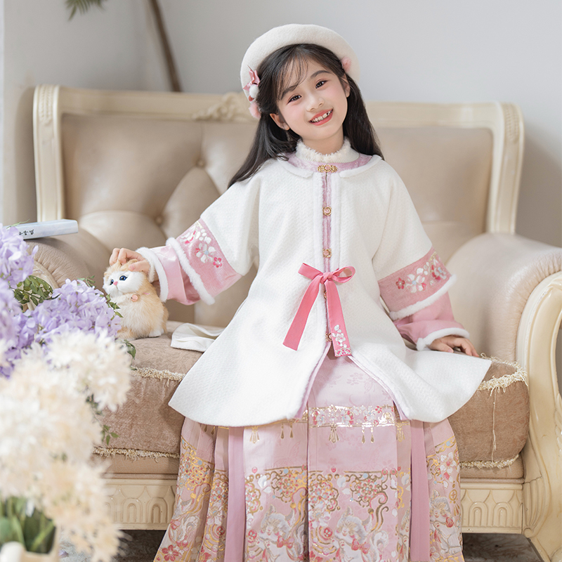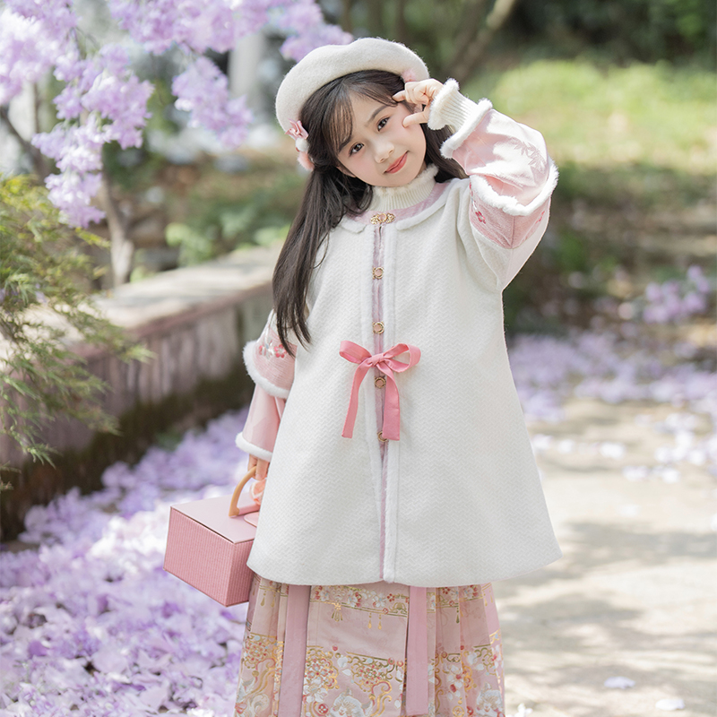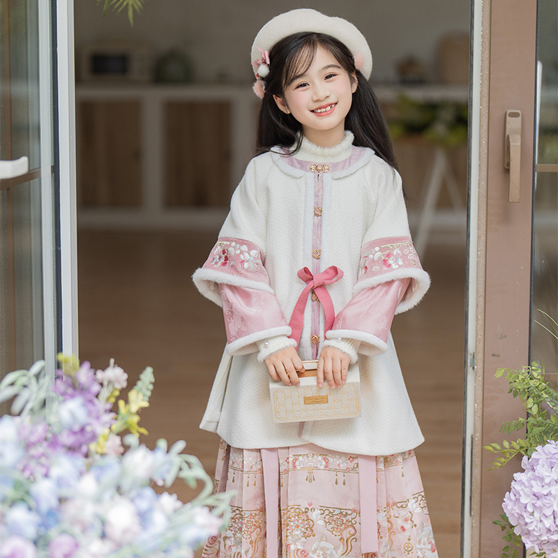 冬款 汉服女童唐装 长外套马面裙套加厚拜年服 观山见童装 千年萌宠