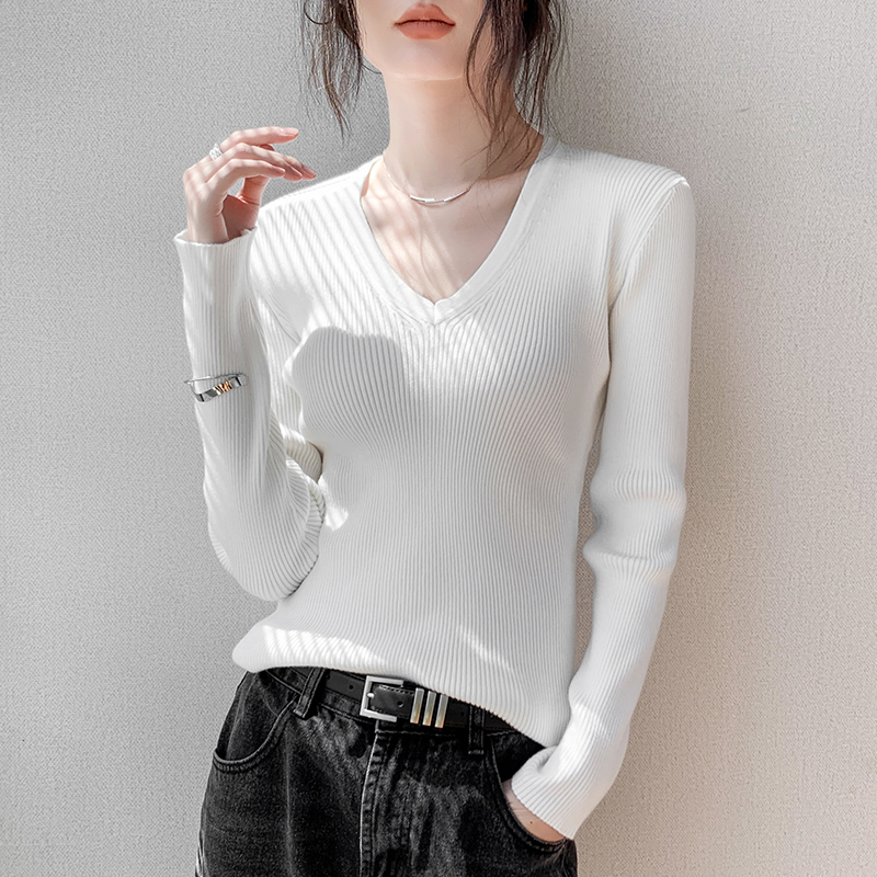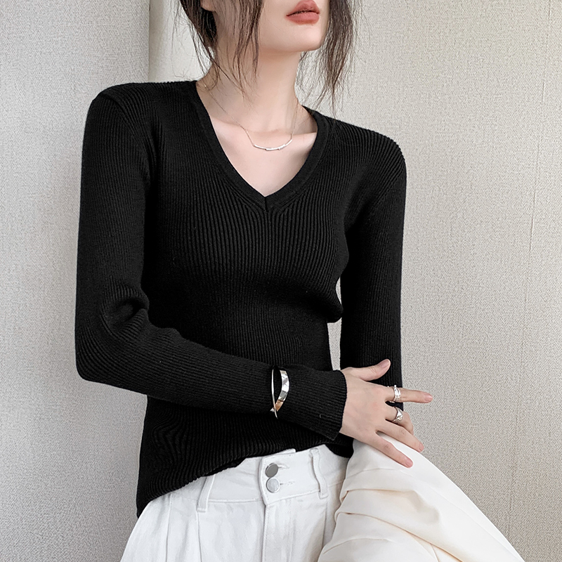 内搭上衣 高级感独特气质修身 韩系学院风v领针织衫 毛衣女秋冬新款