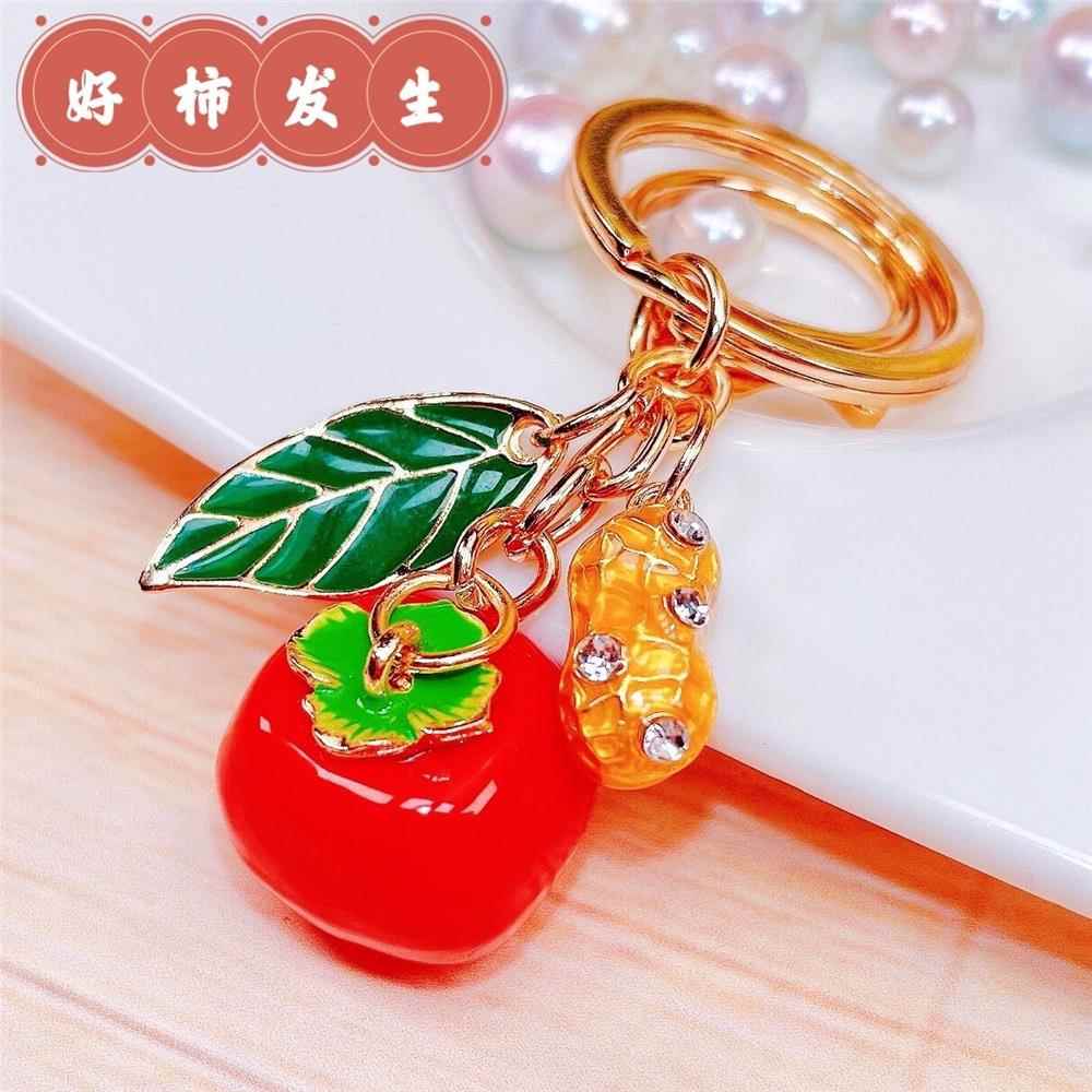 好柿成双招财好柿花生汽车钥匙扣女可爱包挂件钥匙链圈年会小礼品