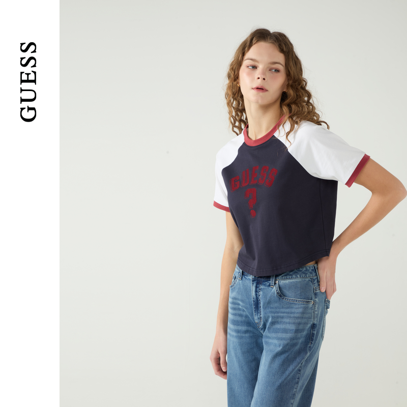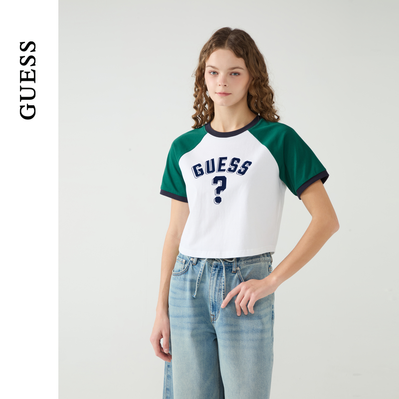 T恤 撞色插肩袖 W5PP76K2Q40 校园短款 GUESS女士美式