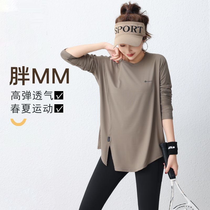 Ackdcs假两件瑜伽服上衣女秋冬带胸垫运动T恤网纱拼接长袖 健身衣