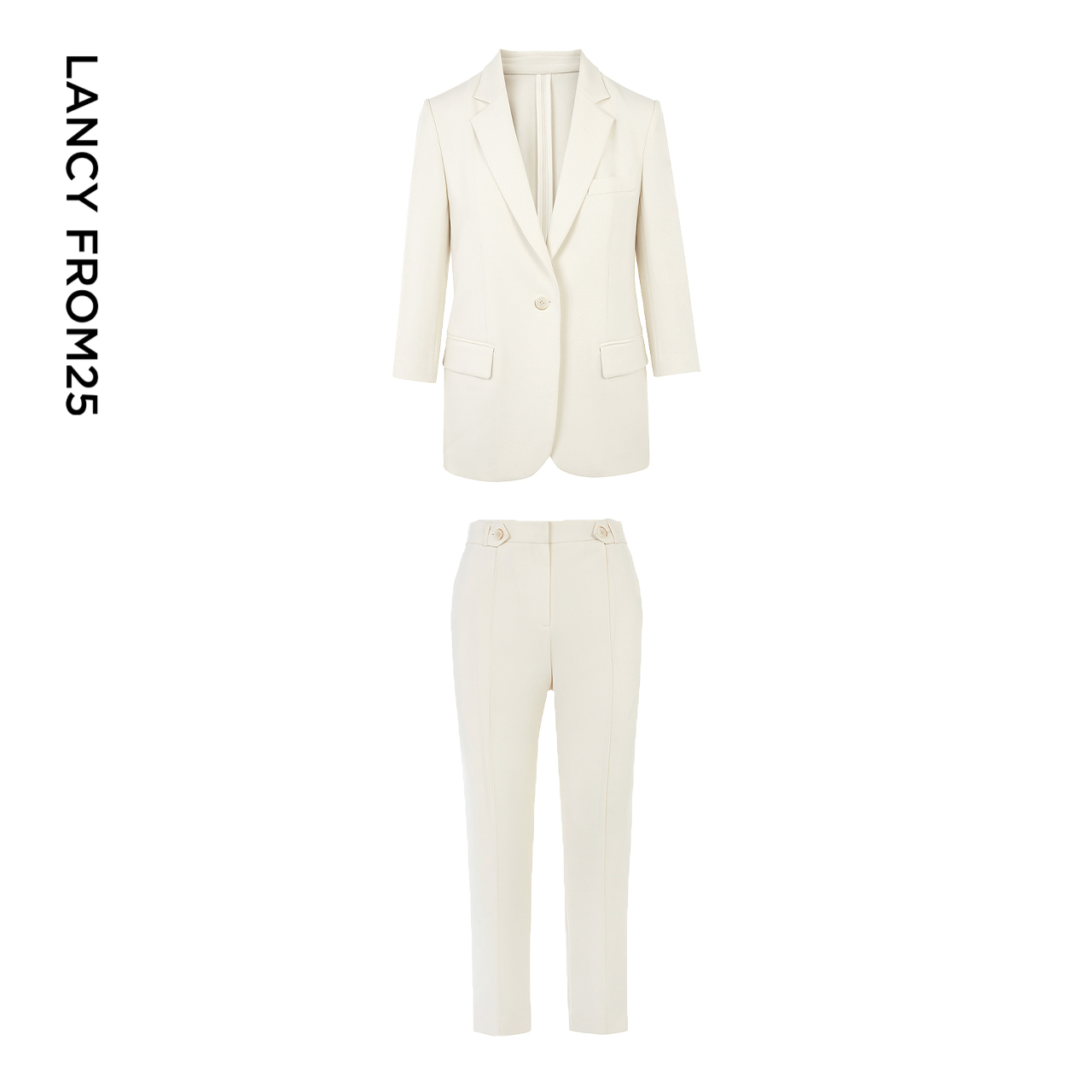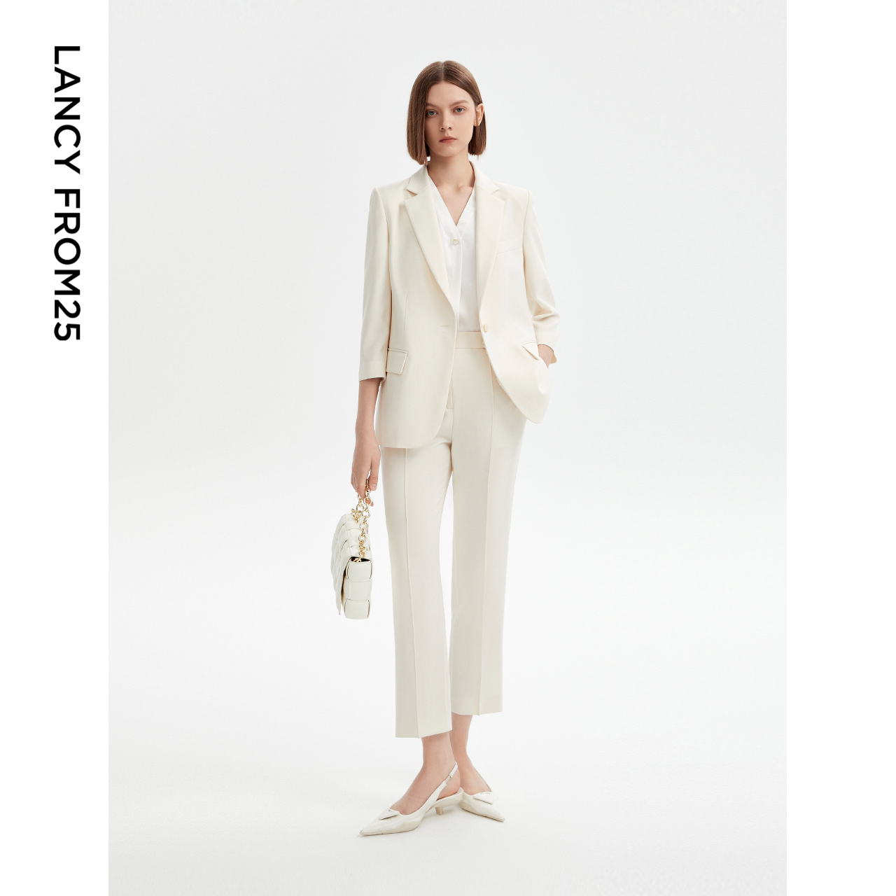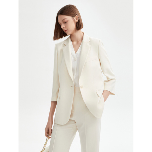 朗姿三醋酸Basic衣橱 夏新款 白色休闲职业西装 西裤 小西服 外套