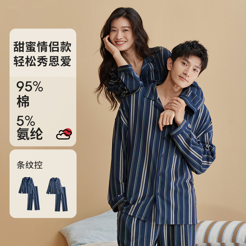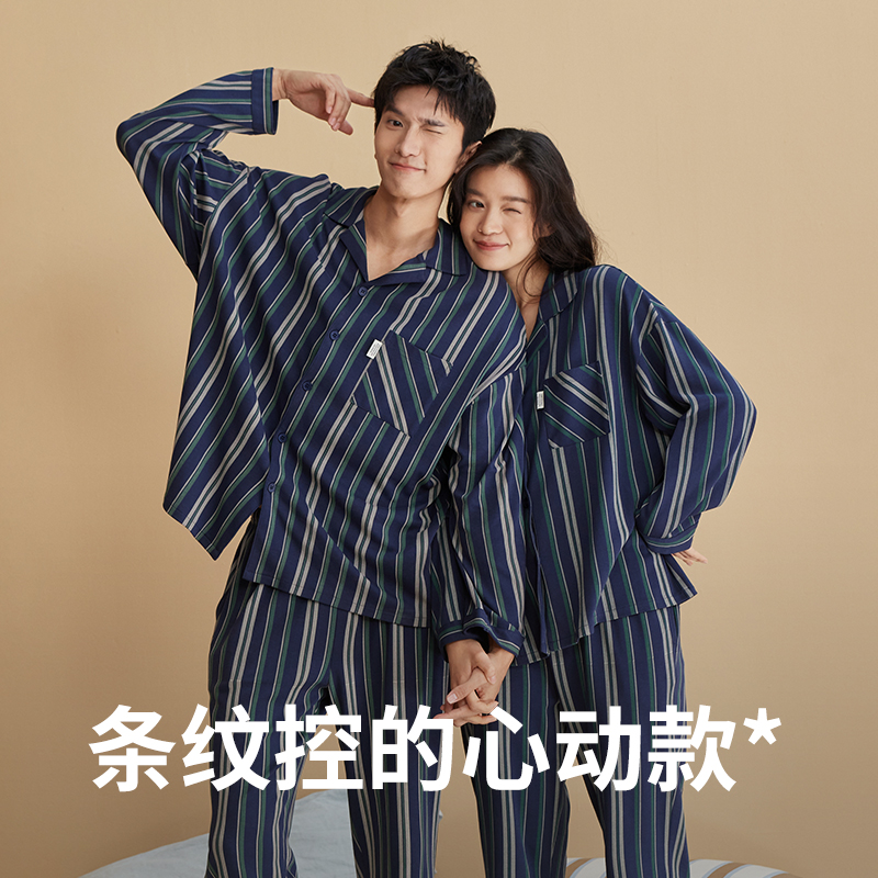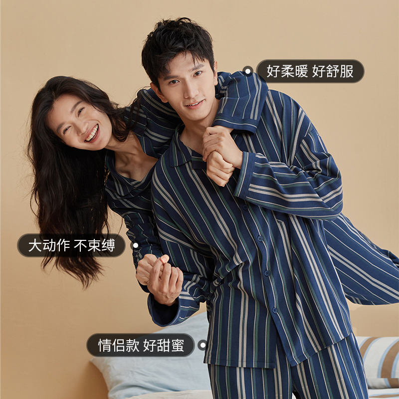 休闲家居服套装 男女同款 可出门 女长袖 安比斯情侣睡衣舒适纯棉秋季