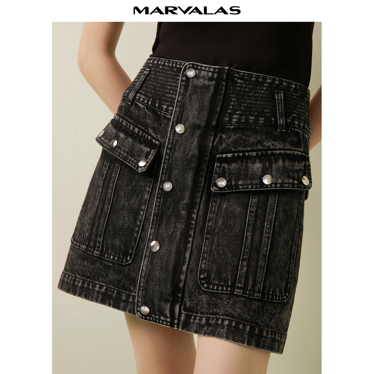 风325337010 含棉复古撞色明线裙子轻熟法式 Vero Moda半身裙25秋季