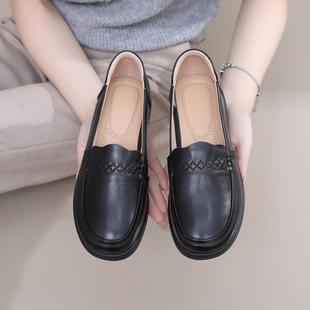 防滑牛筋底平底舒适超软中老年单鞋 大码 女 真皮软底春秋新款 妈妈鞋