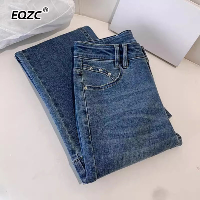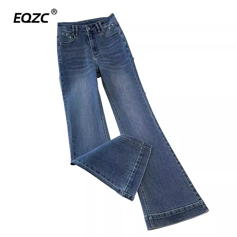 百搭深蓝色马蹄裤 复古牛仔微喇裤 高腰显瘦修身 新款 女25年春秋季