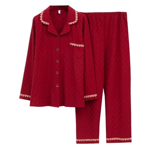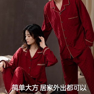 红色纯棉睡衣结婚新婚情侣套装 高级感一男一女方陪嫁妆礼盒春夏季