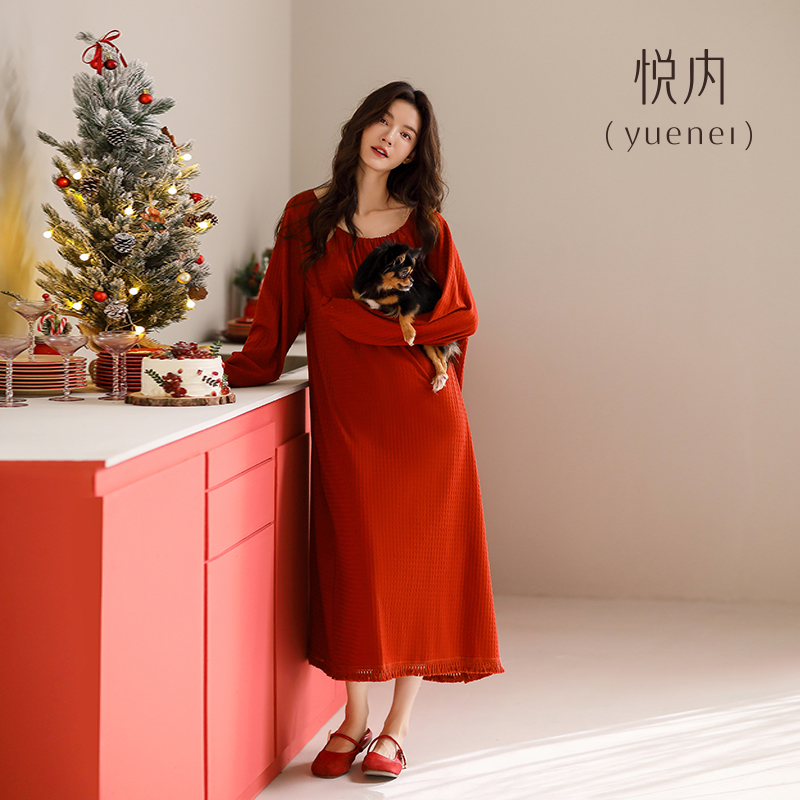 幸棉法式 睡裙女秋超仙睡衣家居服露背高级感连衣裙宽松长裙子 长袖