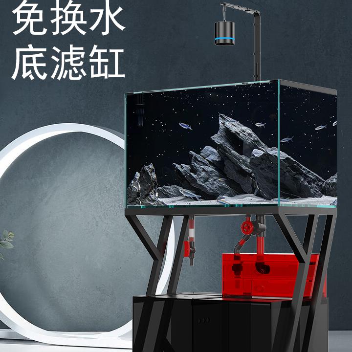 赫希客厅超白鱼缸底滤生态溪流水族箱定制家用方形玻璃水草金鱼缸