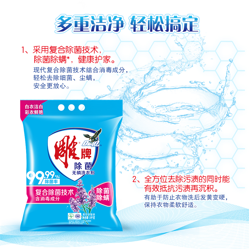 官方正品 雕牌无磷洗衣粉大包装 20斤强去渍除菌除螨5kg2家用大袋装