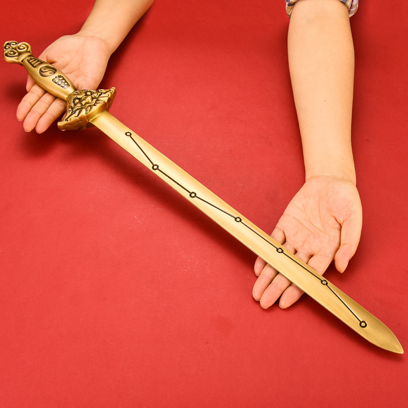 纯黄铜七星宝剑道士剑中式 家居玄关工艺品仿古实心大号小铜剑摆件