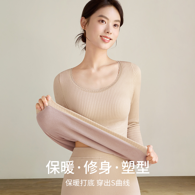保暖秋衣秋裤 发热打底衫 女士单件上衣 冬季 保暖内衣女加厚加绒套装