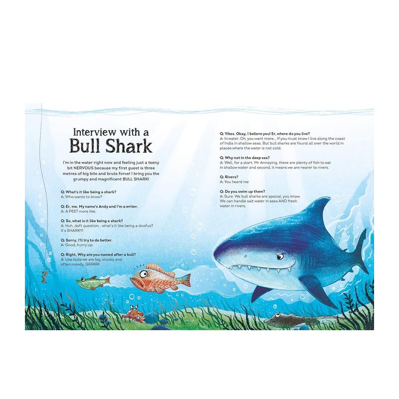 熊猫濒危动物 袋鼠有袋动物 老虎带爪野兽Interview 动物采访:鲨鱼与海洋王者 with Shark英文儿童插画绘本书 现货多册选拍