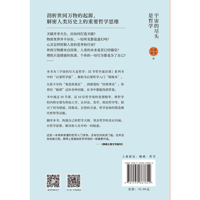 尽头是哲学 宇宙 32节哲学通识课.启蒙哲学篇 10节课讲透近10位大师 哲学启蒙入门读物书籍 现货 哲学智慧 包邮