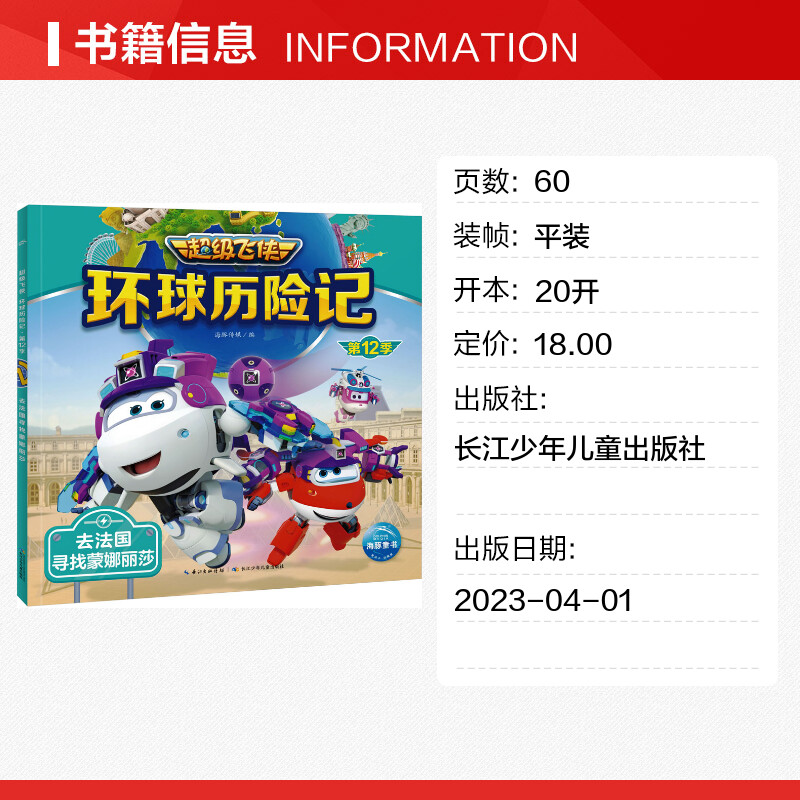 海豚传媒 编 新华书店正版 第12季 图书籍 少儿动漫书少儿 去法国寻找蒙娜丽莎 图画书 超级飞侠环球历险记 绘本