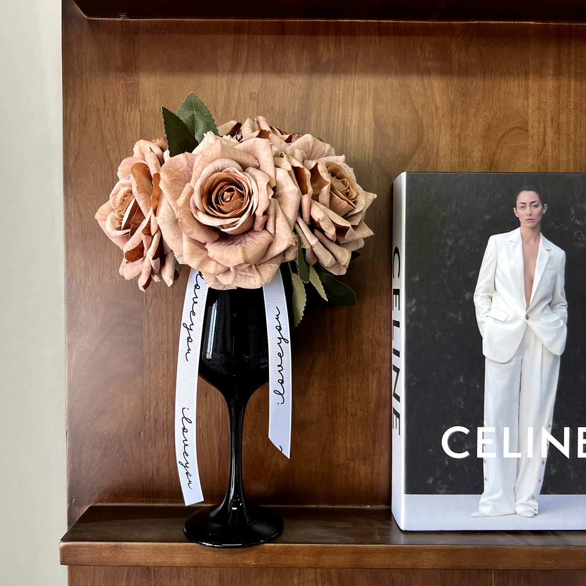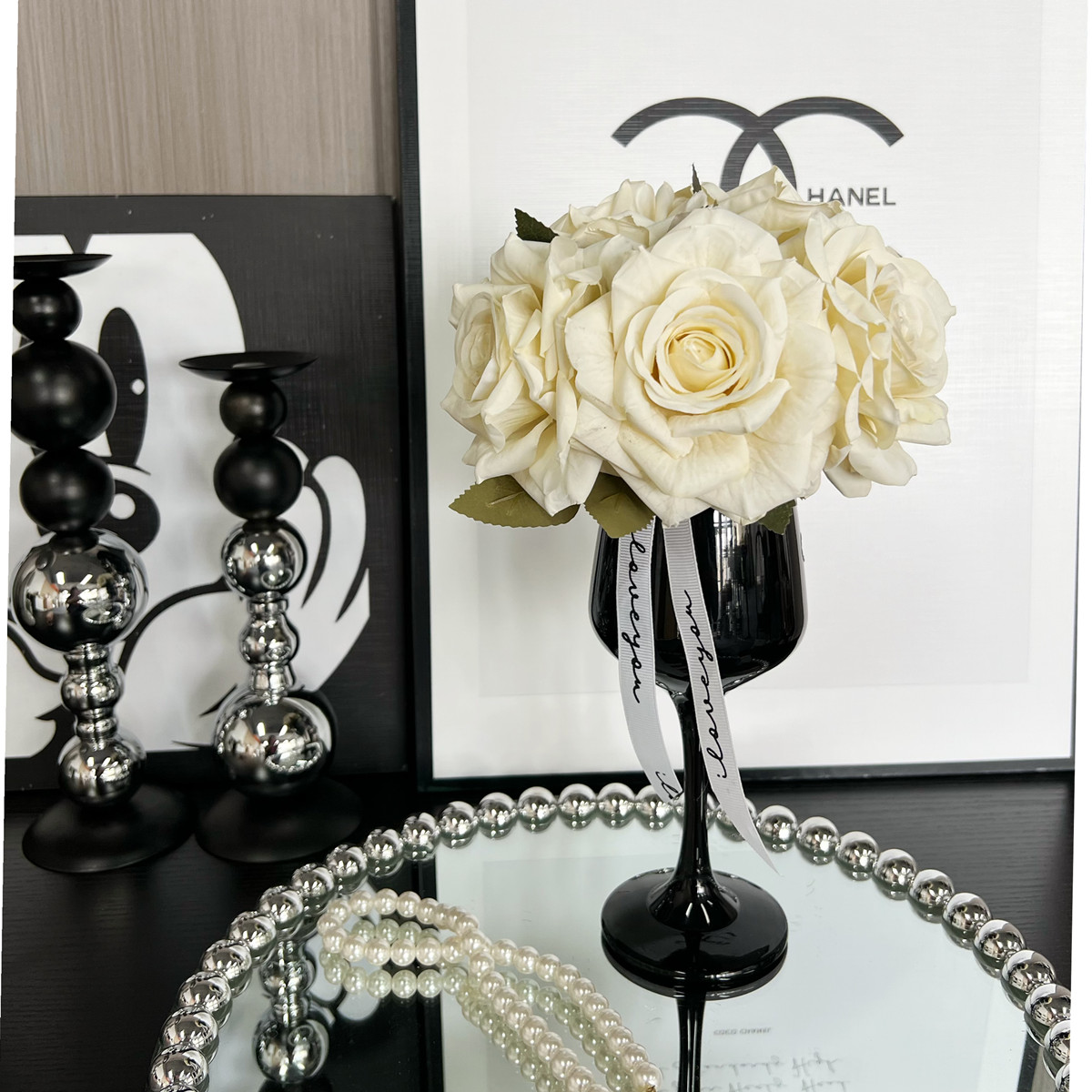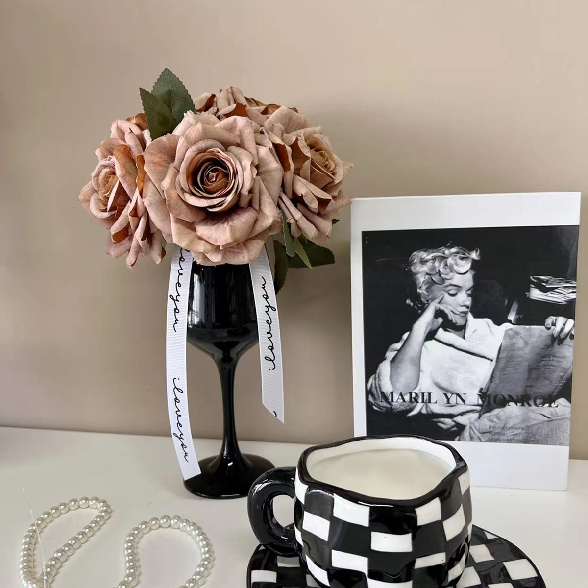 现代轻奢设计师仿真花艺摆件假花客厅装 饰餐桌干花玫瑰摆酒杯花瓶