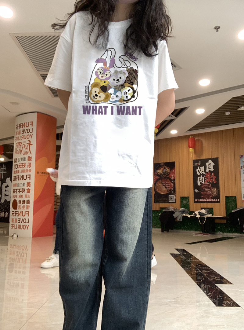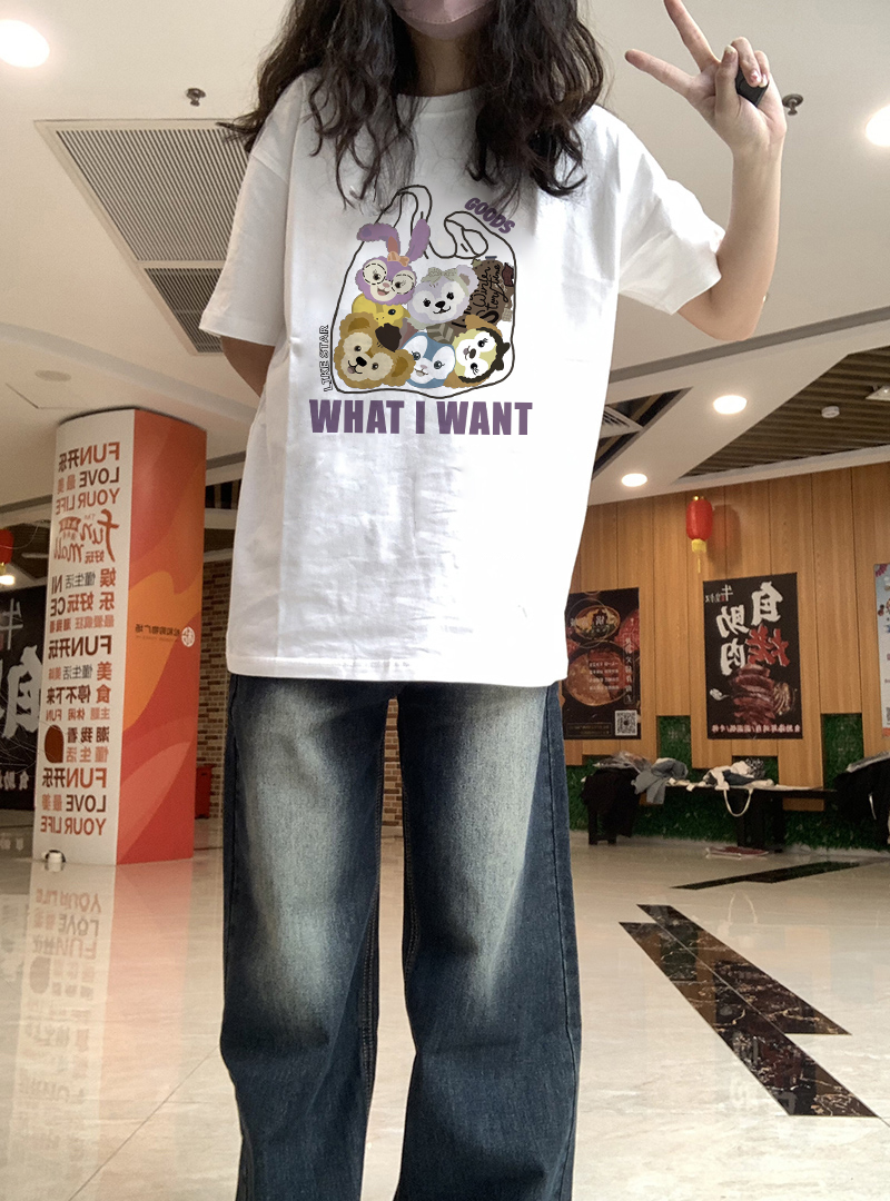 上衣 ins潮流宽松圆领纯棉情侣短袖 美式 卡通兔子印花t恤女百搭夏季