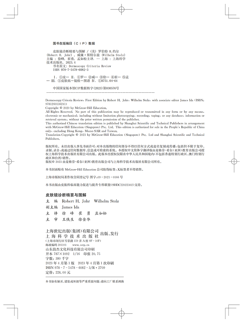 2023新书 上海科学技术出版 皮肤镜诊断精要与图解 H.Johr 社9787547860823 Robert 正版