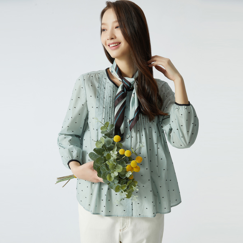 菱形格V领短背心易打理衬衣俏皮学院风两件套 女冬季 森马长袖 衬衫