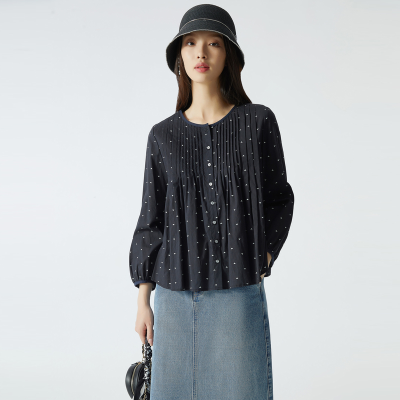 女设计感复古新中式 秋2025新款 衬衫 灯笼袖 高级感圆领衬衣 立领法式