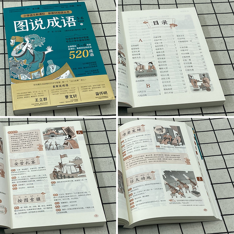 图说成语小学一二2三3四4五5六6年级部编人教版 学校每册520个成语故事典故接龙归纳造句成语解析辨析造句