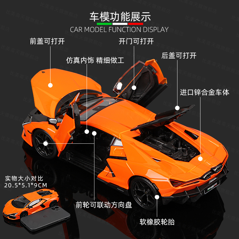 比美高1 24兰博基尼Revuelto合金车模仿真混动大牛超跑汽车模型车