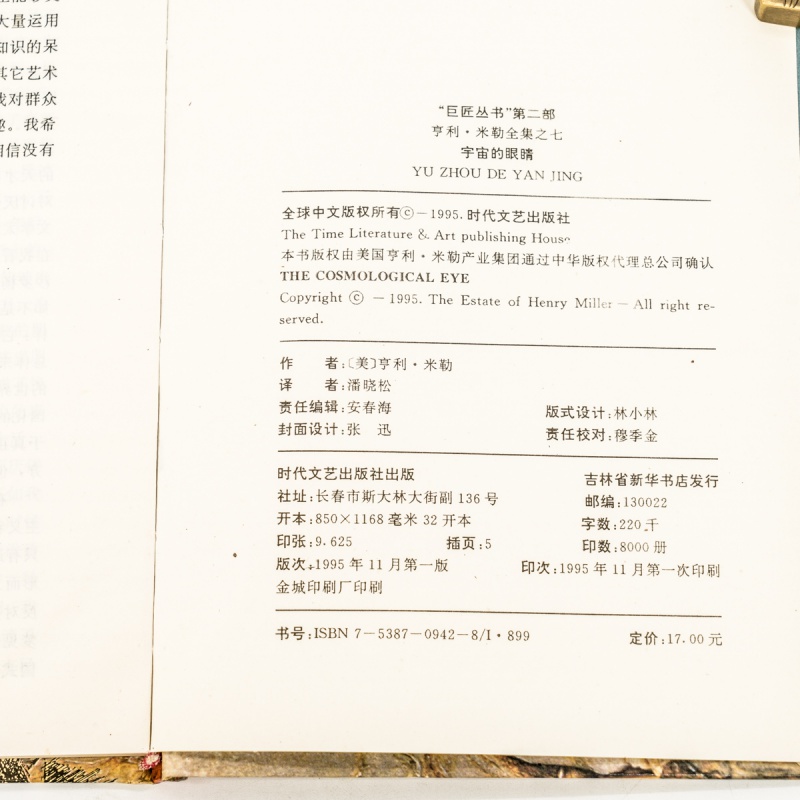 时代文艺出版 9787538709421 书籍老版 正版 社 精装 巨匠丛书 亨利米勒全集 眼睛 宇宙