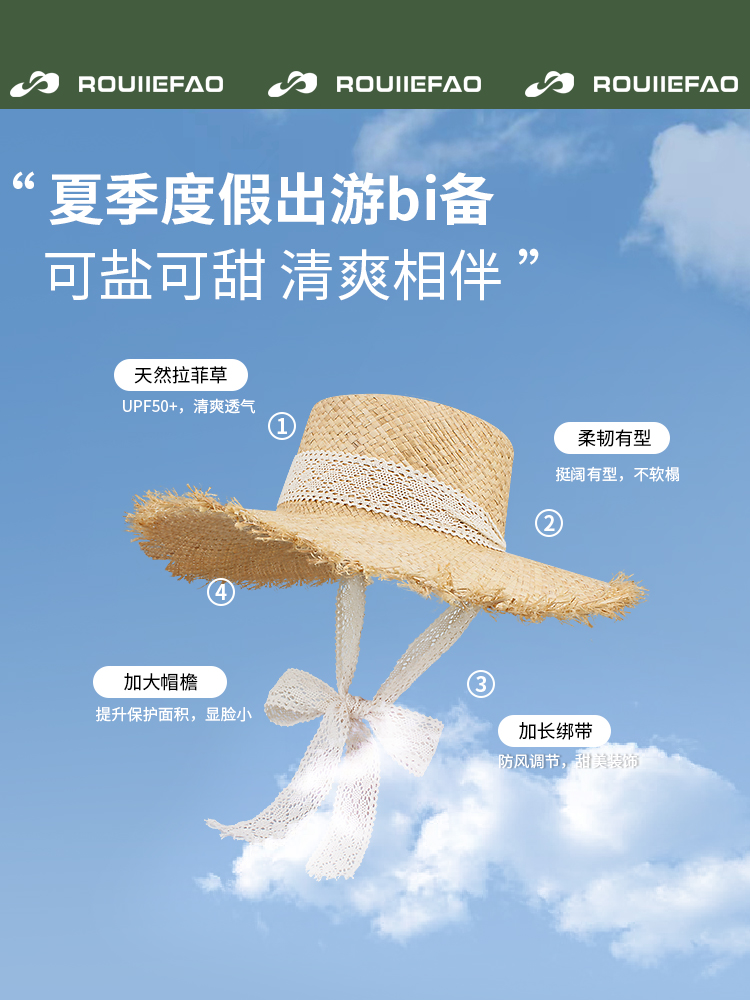 防紫外线空顶太阳帽 女款 户外遮阳草帽大帽檐2025新款 防晒帽子夏季
