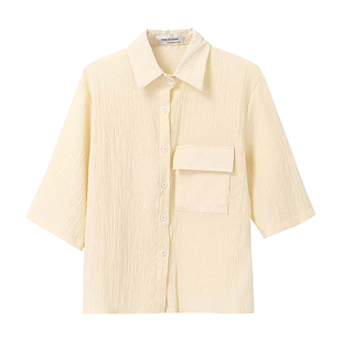 中袖 翻领开衫 衬衫 新款 上衣女士纯色宽松衬衣 2025春季 LE真维斯女装