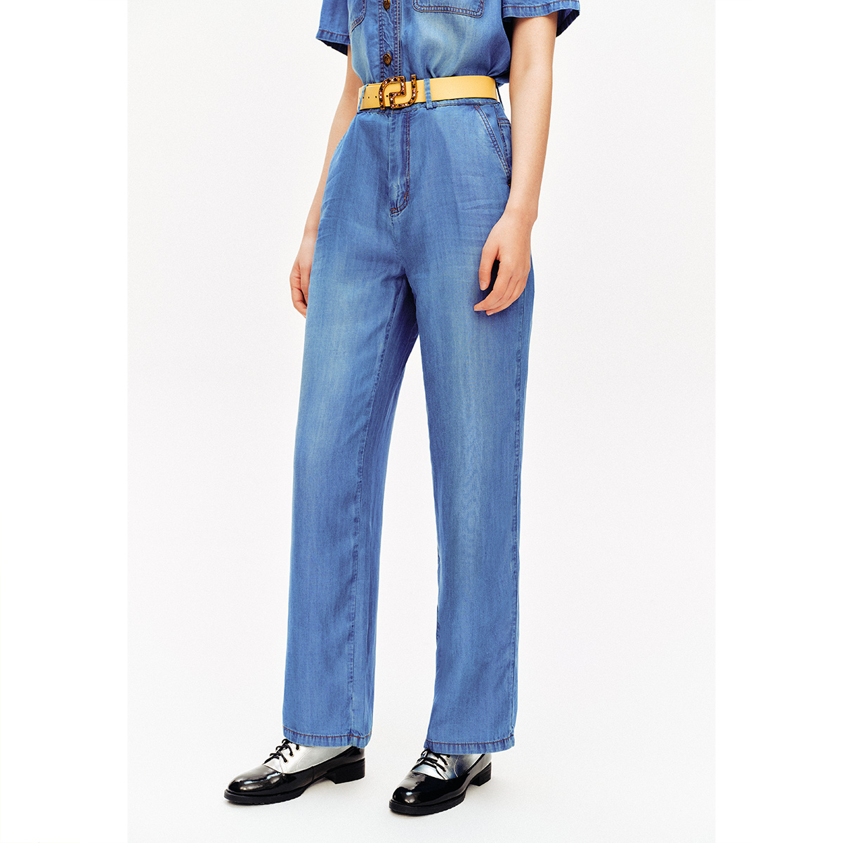 女阔腿宽松显瘦休闲流行秋冬新品 OCHIRLY欧时力 纯棉直筒牛仔长裤