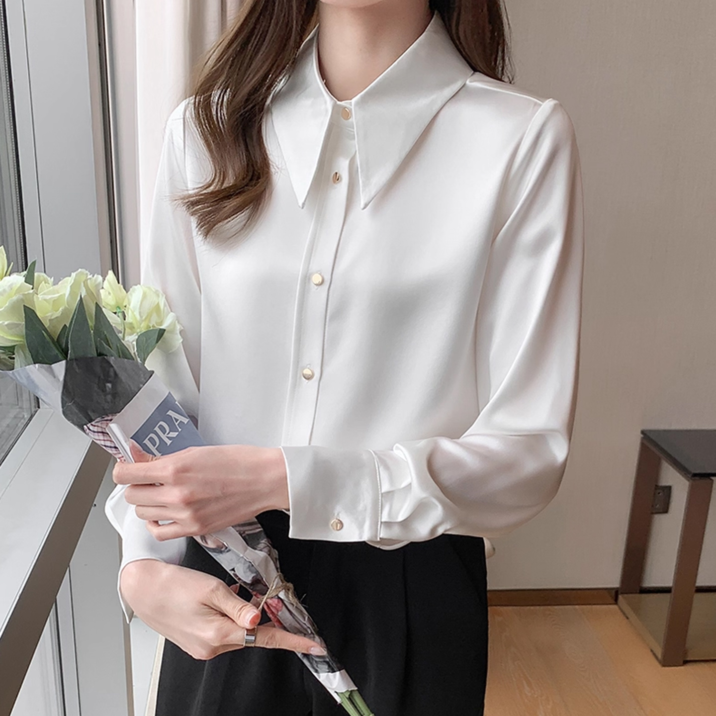白色衬衫 高级感气质翻领职业衬衣加绒加厚打底上衣 女2025秋冬新款