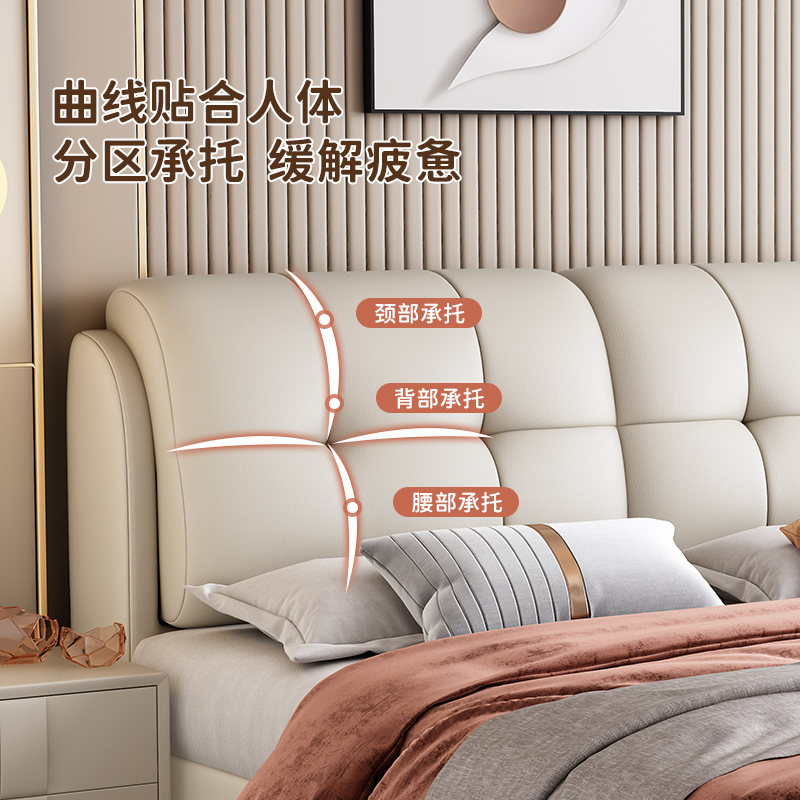 政府补贴馨佰利真皮床1米8双人大床2025新款 卧室可储物家用婚庆床