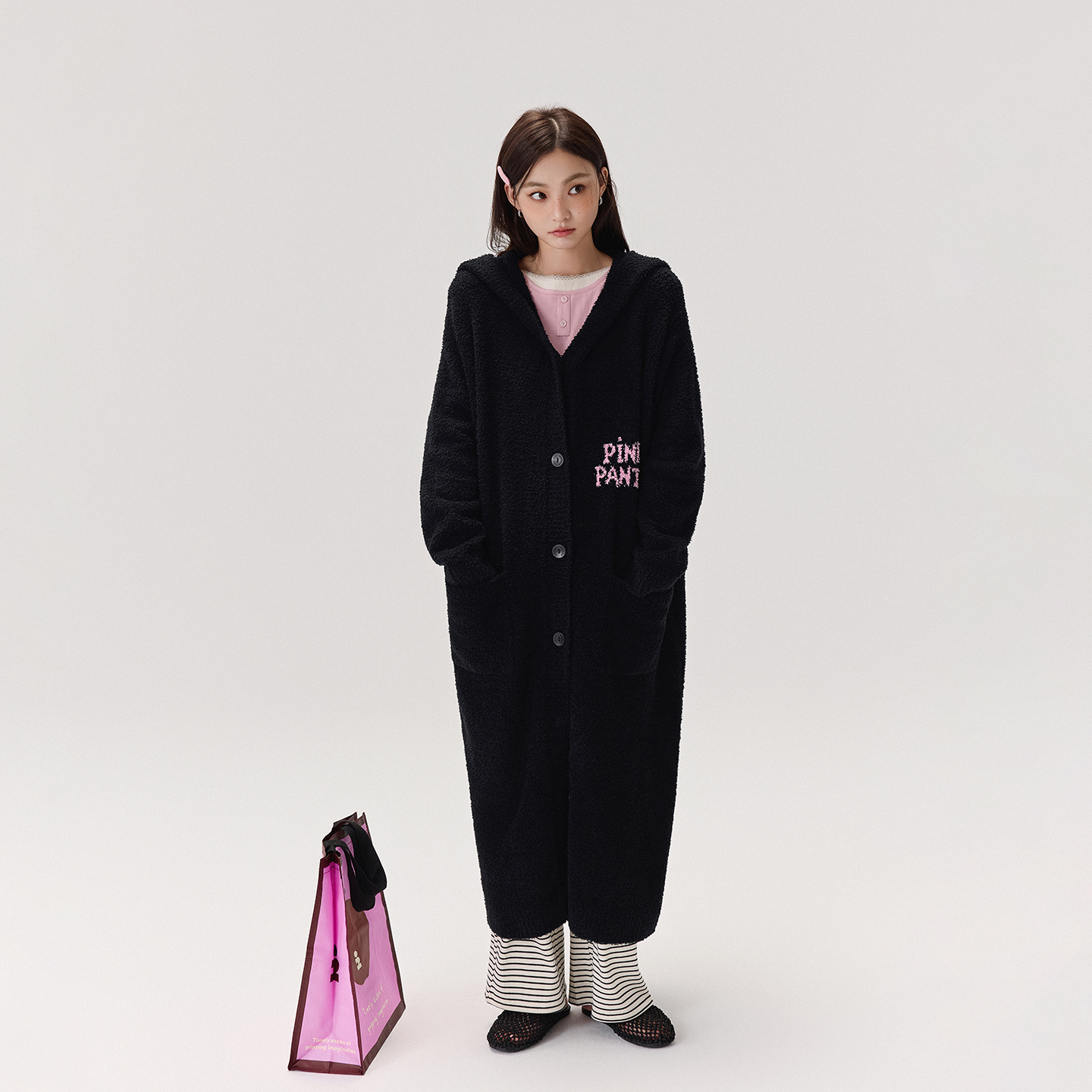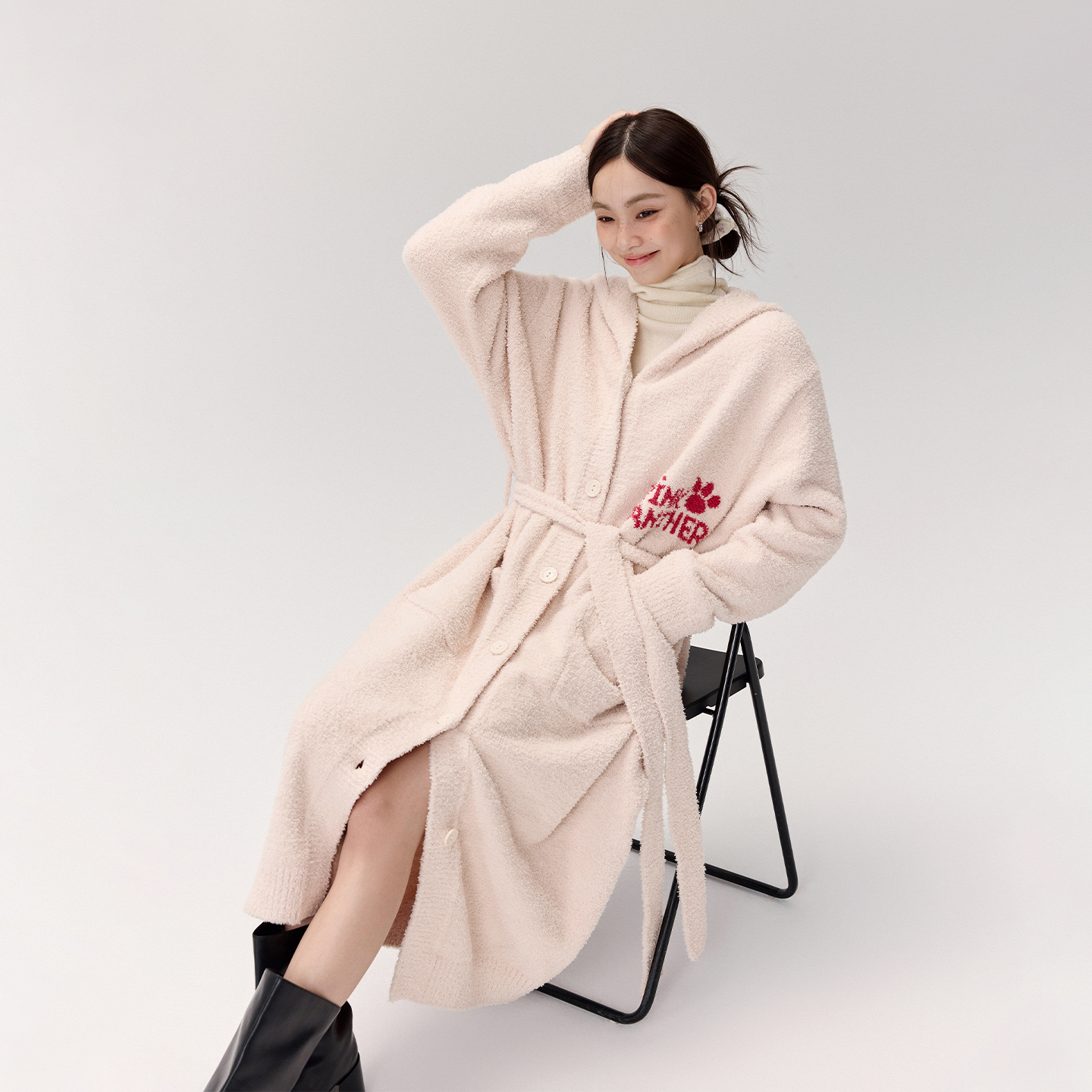 女 半边绒连帽保暖睡袍睡衣家居服浴袍秋冬季 亲嘴猫 粉红豹联名