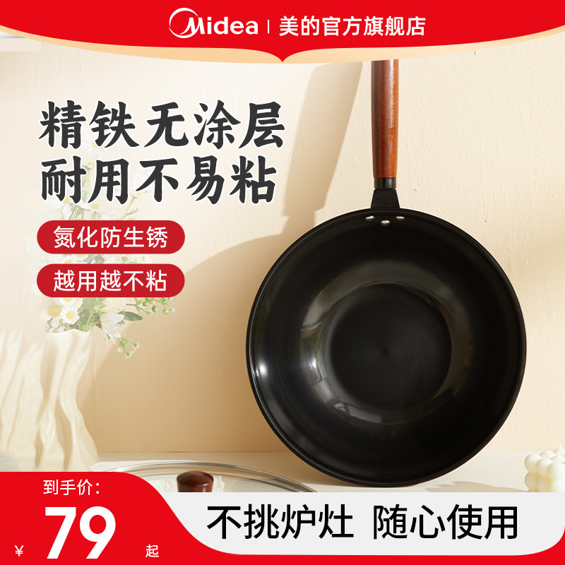 章丘炒菜锅传统铁锅官方旗舰老式 炒锅家用不粘锅无涂层燃气灶适用