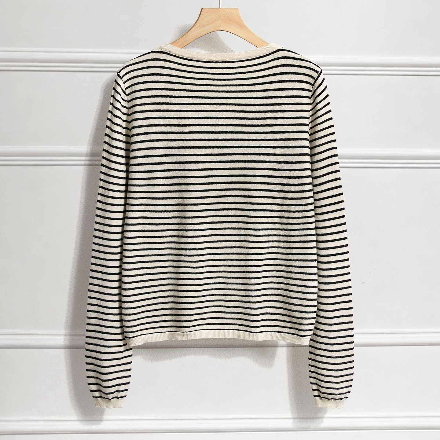 女装 她池宽松款 新款 2025秋装 撞色条纹单排扣圆领正肩上衣 针织衫