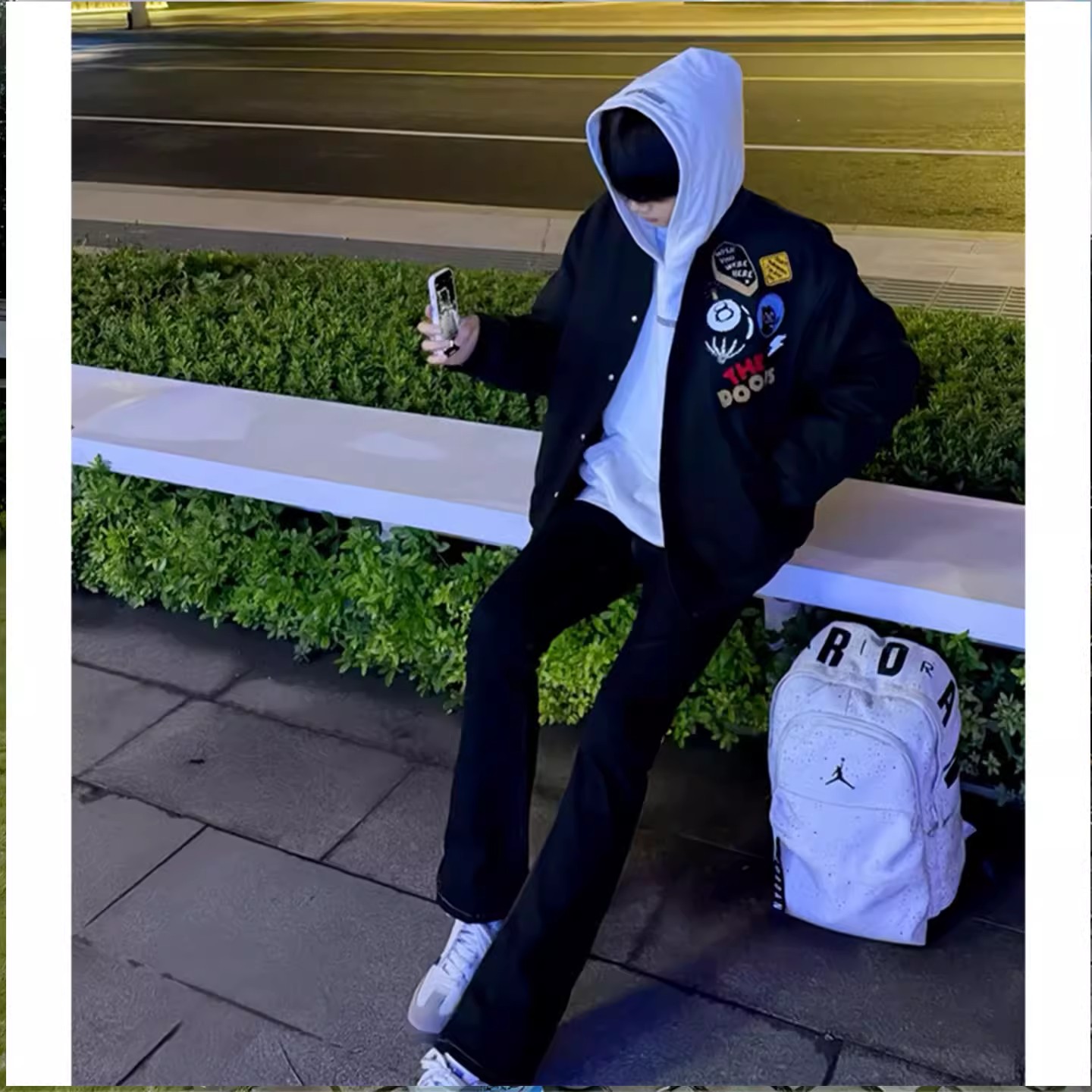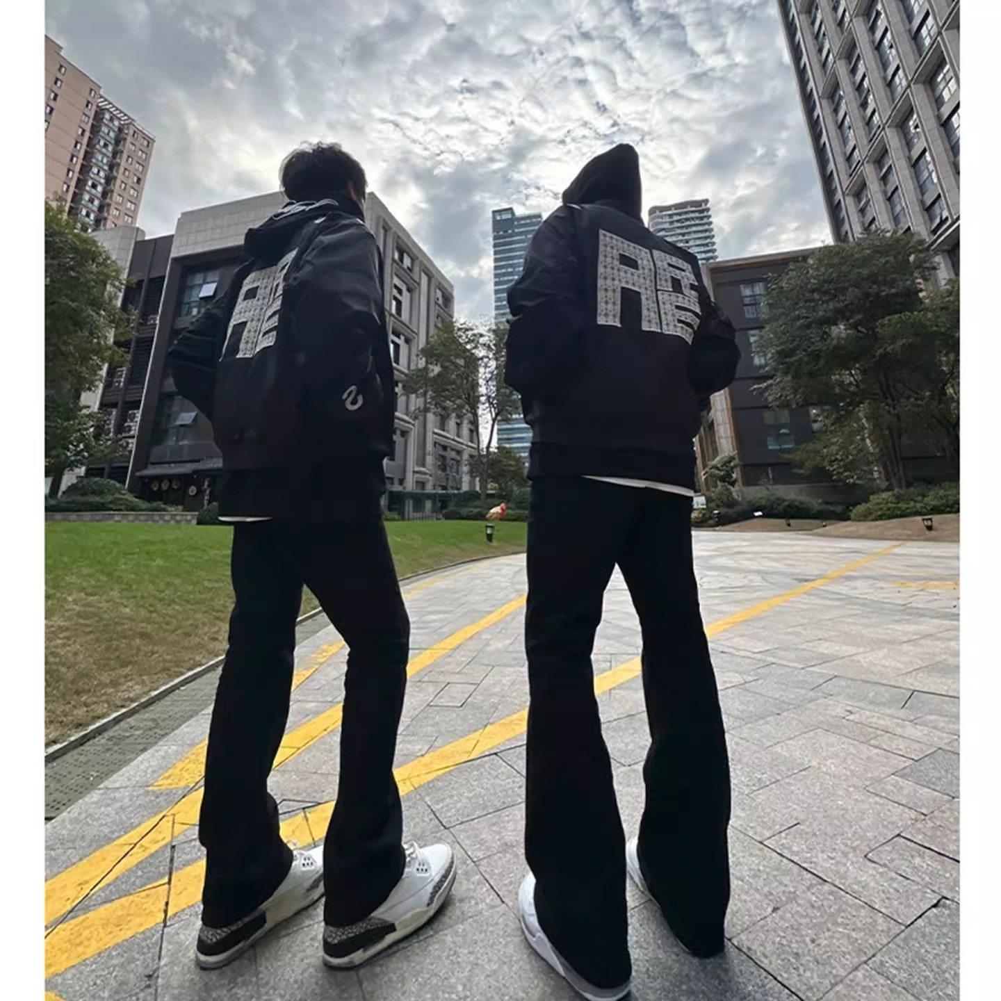 美式 男款 高街vibe裤 子直筒显瘦修身 黑色517版 弯刀裤 型微喇牛仔裤