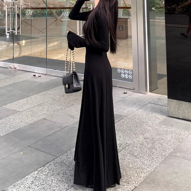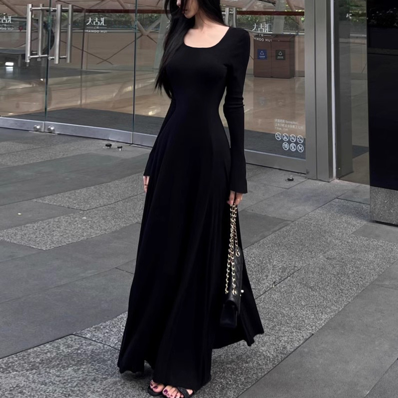 黑色连衣裙高个子内搭打修身 高级感长裙 收腰针织连衣裙2025秋新款