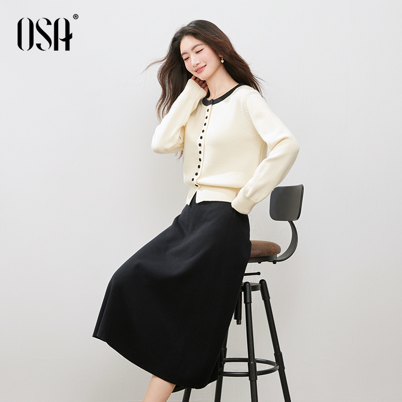 休闲气质荡领上衣半裙两件套女装 三福时尚 秋季 2025新款 512042 套装